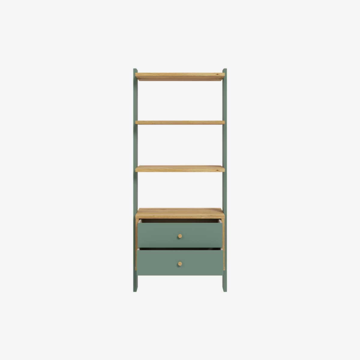 Polyvalente et pratique, elle offre trois tablettes ouvertes pour exposer vos livres, plantes ou objets déco, ainsi que deux tiroirs spacieux pour ranger vos essentiels à l’abri. Les poignées en bois massif ajoutent une touche raffinée et authentique.