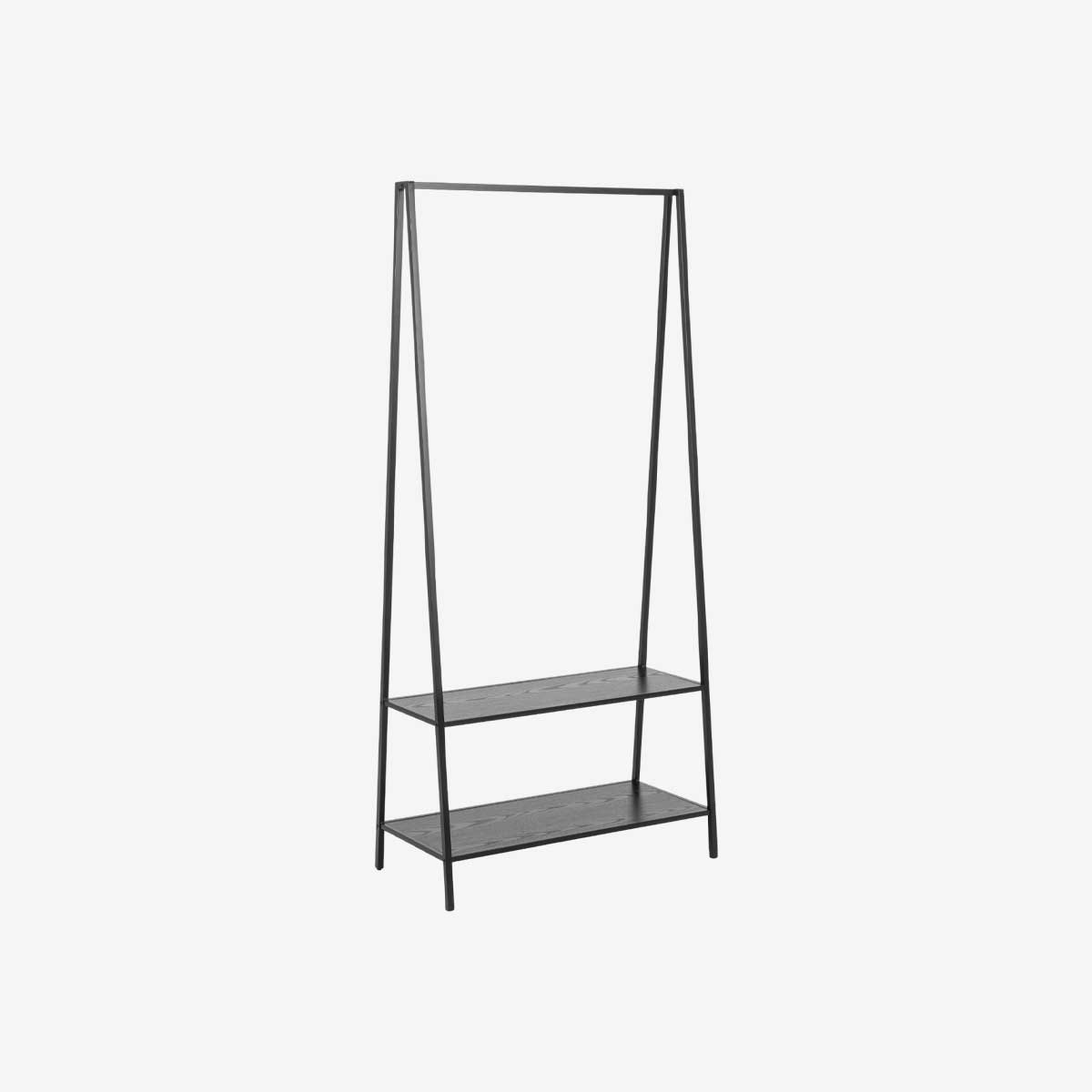 Polyvalent et pratique, il offre deux étagères idéales pour vos chaussures, sacs ou accessoires, ainsi qu’une barre haute pour suspendre vos vêtements. Ce meuble allie élégance contemporaine et gain de place, parfait pour une chambre, un dressing ou une entrée.