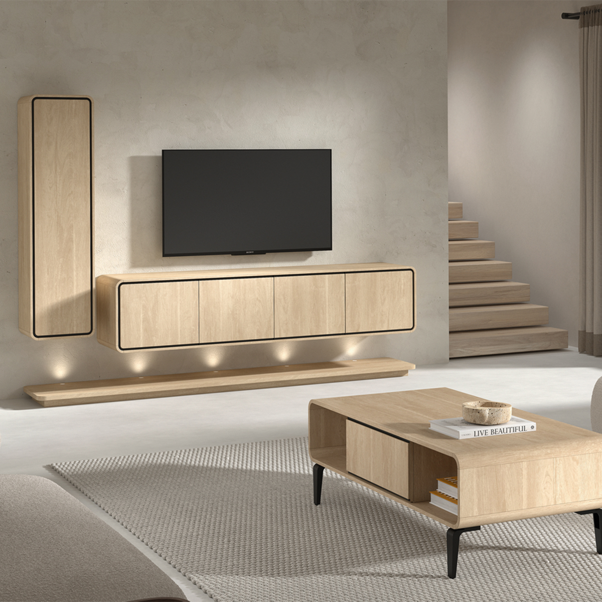 | Composition | COLONNE 1 PORTE SUSPENDU, EN PANNEAUX DE PARTICULES 16mm, REVETEMENT MELAMINE - SYSTEME DE SUSPENSION AVEC LATTES EN MDF - OUVERTURE PUSH TO OPEN, CHARNIERE CLIC 160° EN METAL - MEUBLE MONTE |
