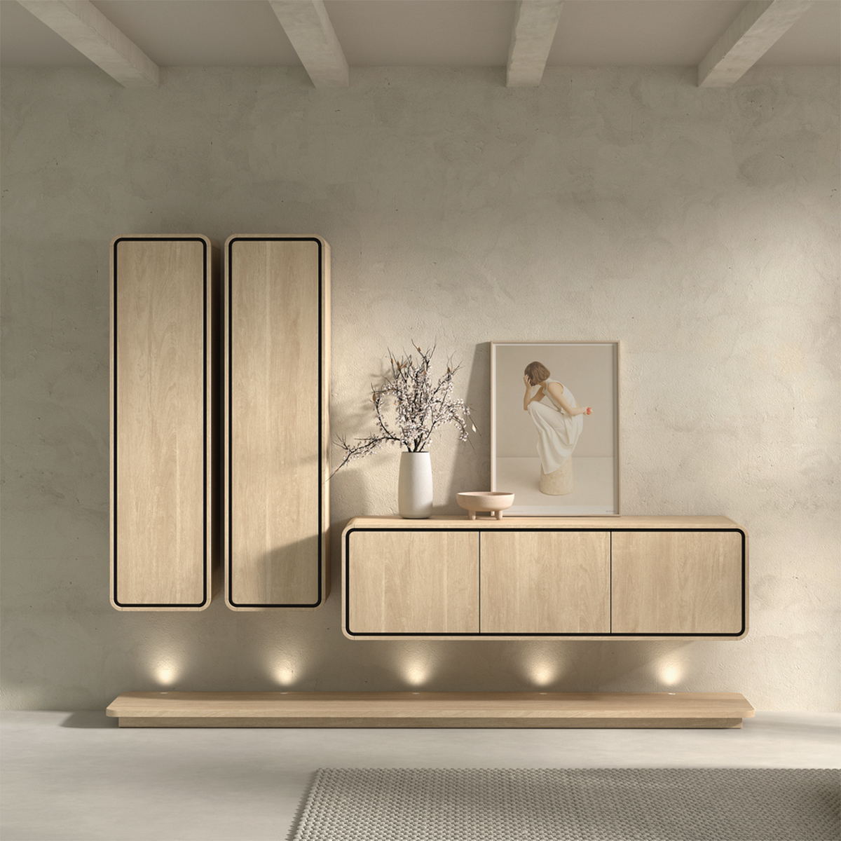 La colonne suspendue Mysteria offre un rangement discret et moderne, parfait pour compléter un ameublement contemporain.