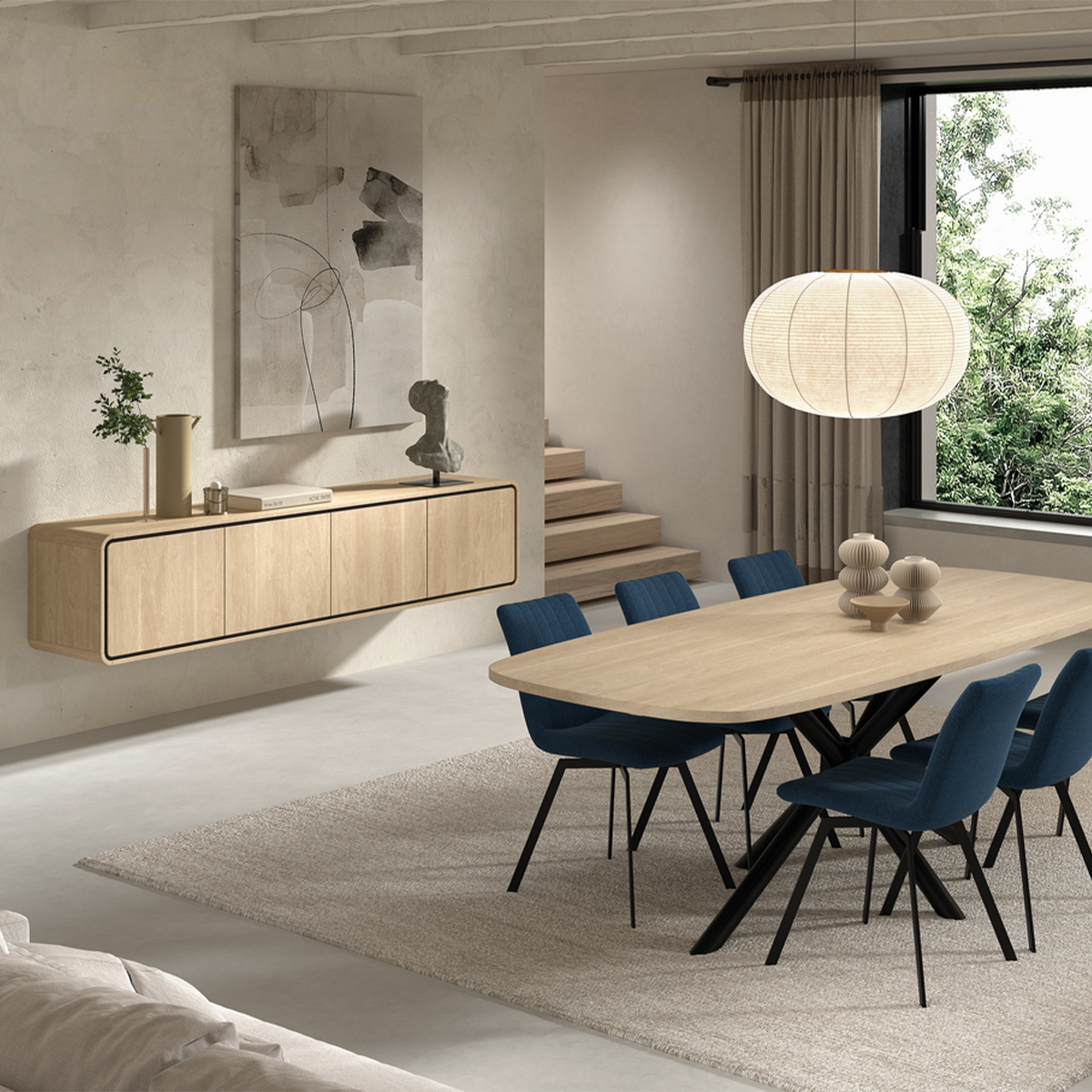Avec sa structure en panneaux de particules mélaminés et son système de suspension solide en MDF, il combine robustesse et esthétisme pour un intérieur contemporain.