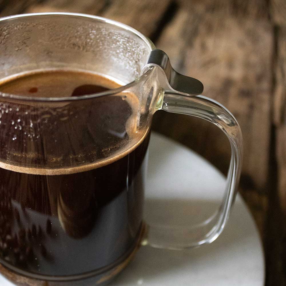 Préparez votre café préféré en toute simplicité avec le mug café à piston, un accessoire élégant et pratique mêlant verre borosilicate, acier inoxydable et bois naturel.