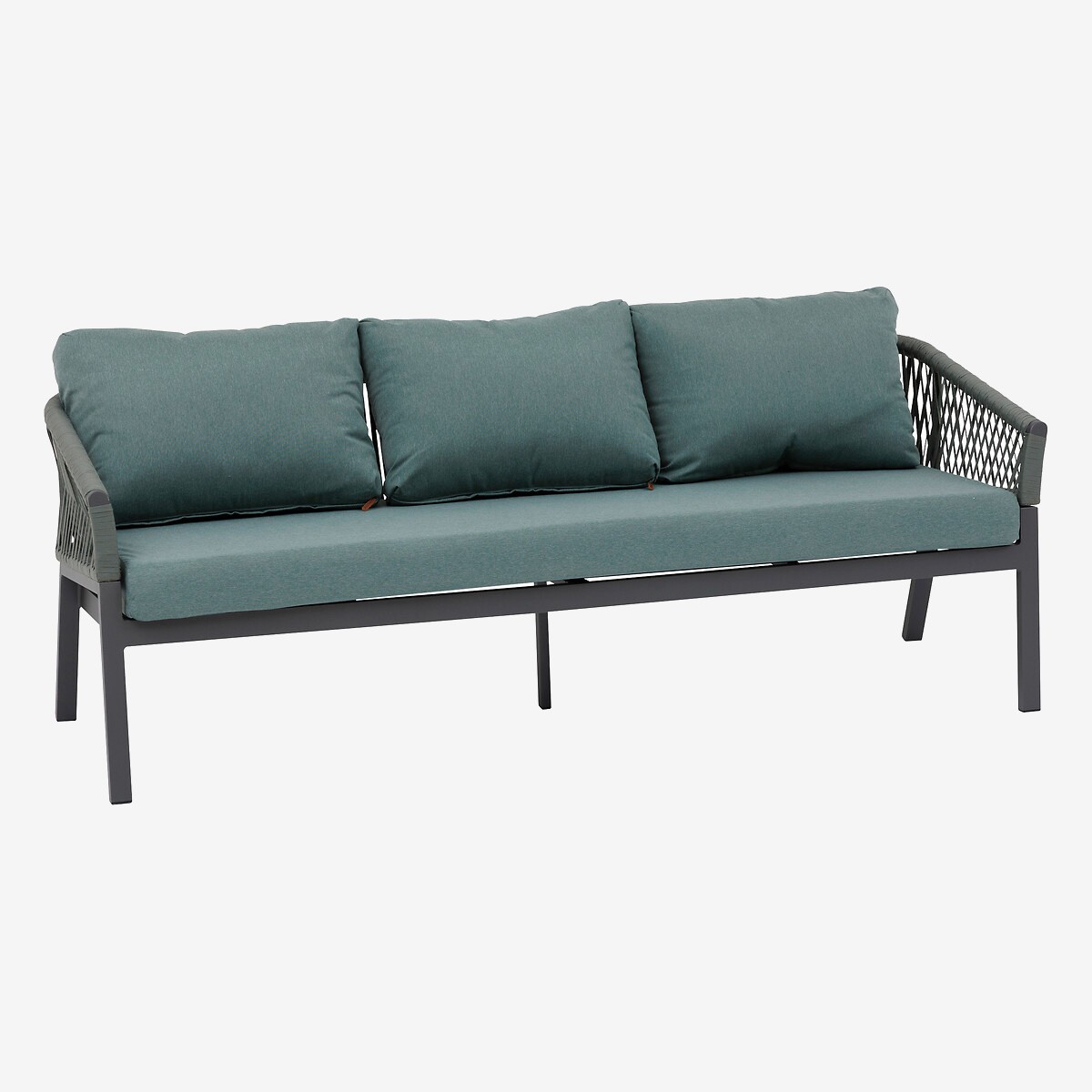 Dimensions de la table L115 x H35 x P60 cm, du canapé L192 x H67 x P75 cm, d’un fauteuil L68 x H67 x P75 cm