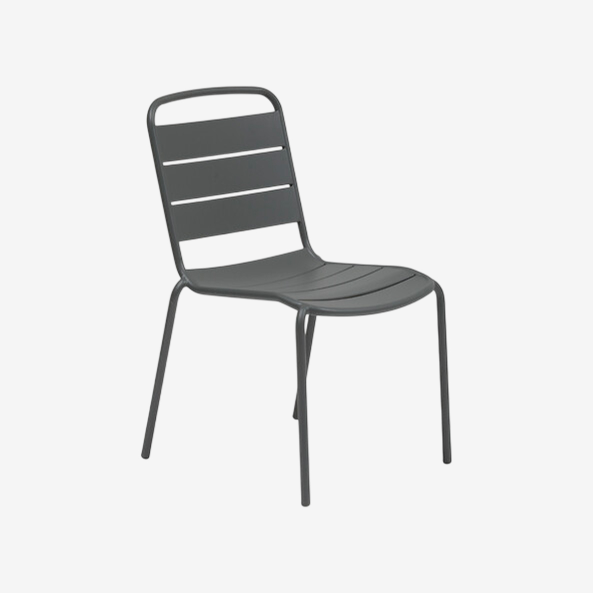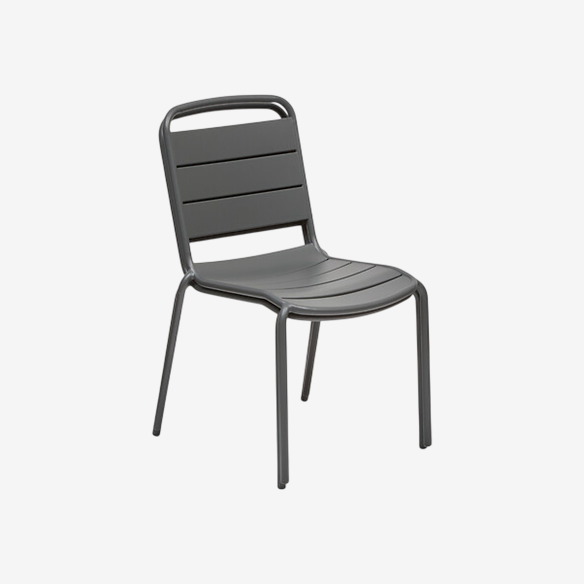 La chaise ALEGORIA empilable en acier graphite est idéale en extérieur. Traitée anti-corrosion et anti-rouille, elle se range facilement grâce à son design empilable.