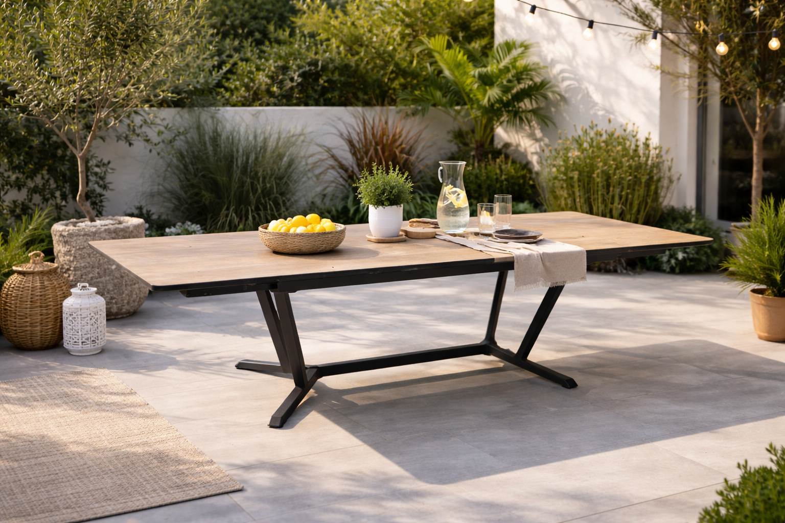 Avec sa finition graphite et Lenk, cette table de jardin séduit par son allure moderne et soignée. Son plateau en céramique Kedra apporte du caractère à l’ensemble, tandis que son piètement en forme berceau renforce son style tout en apportant une touche d’élégance à votre espace extérieur.