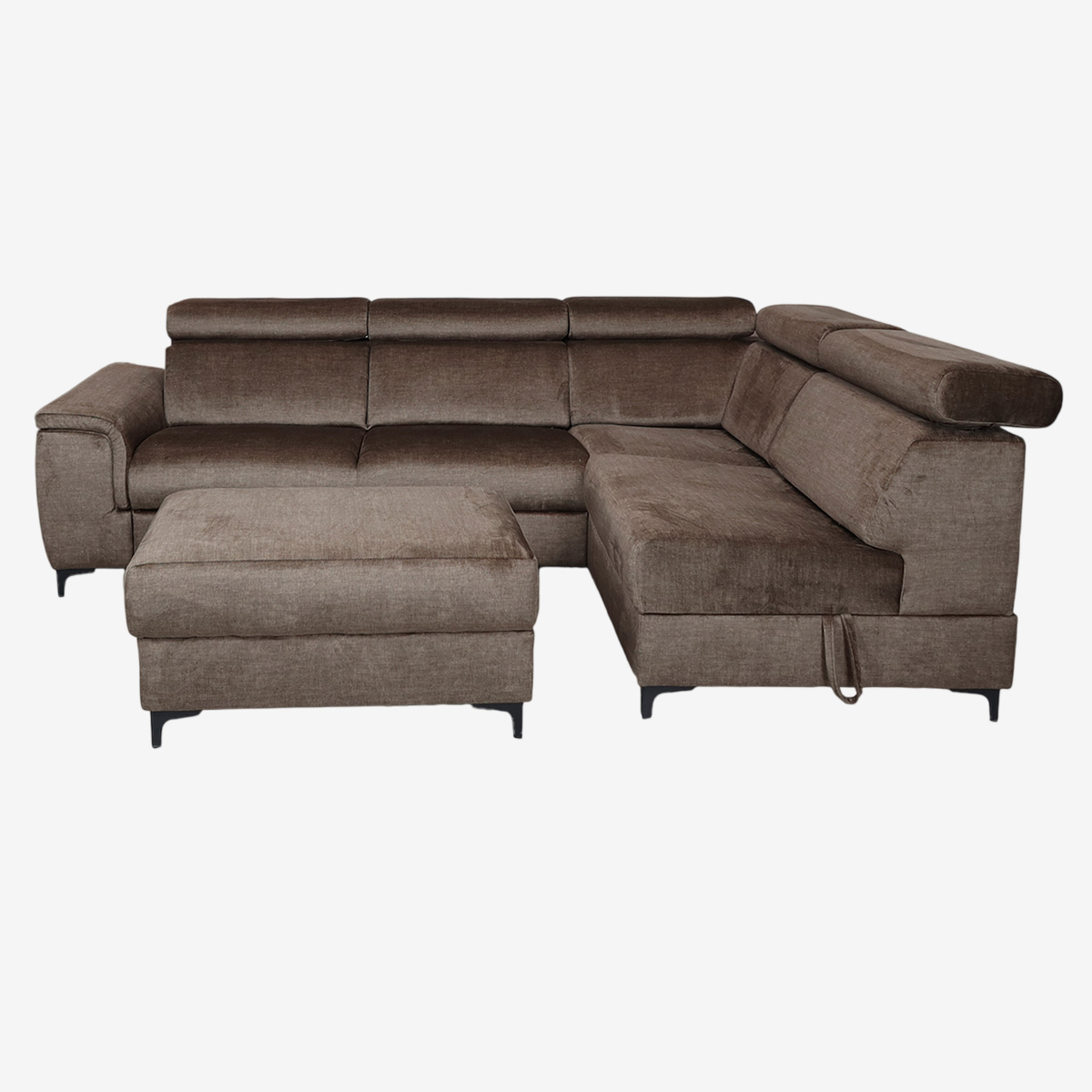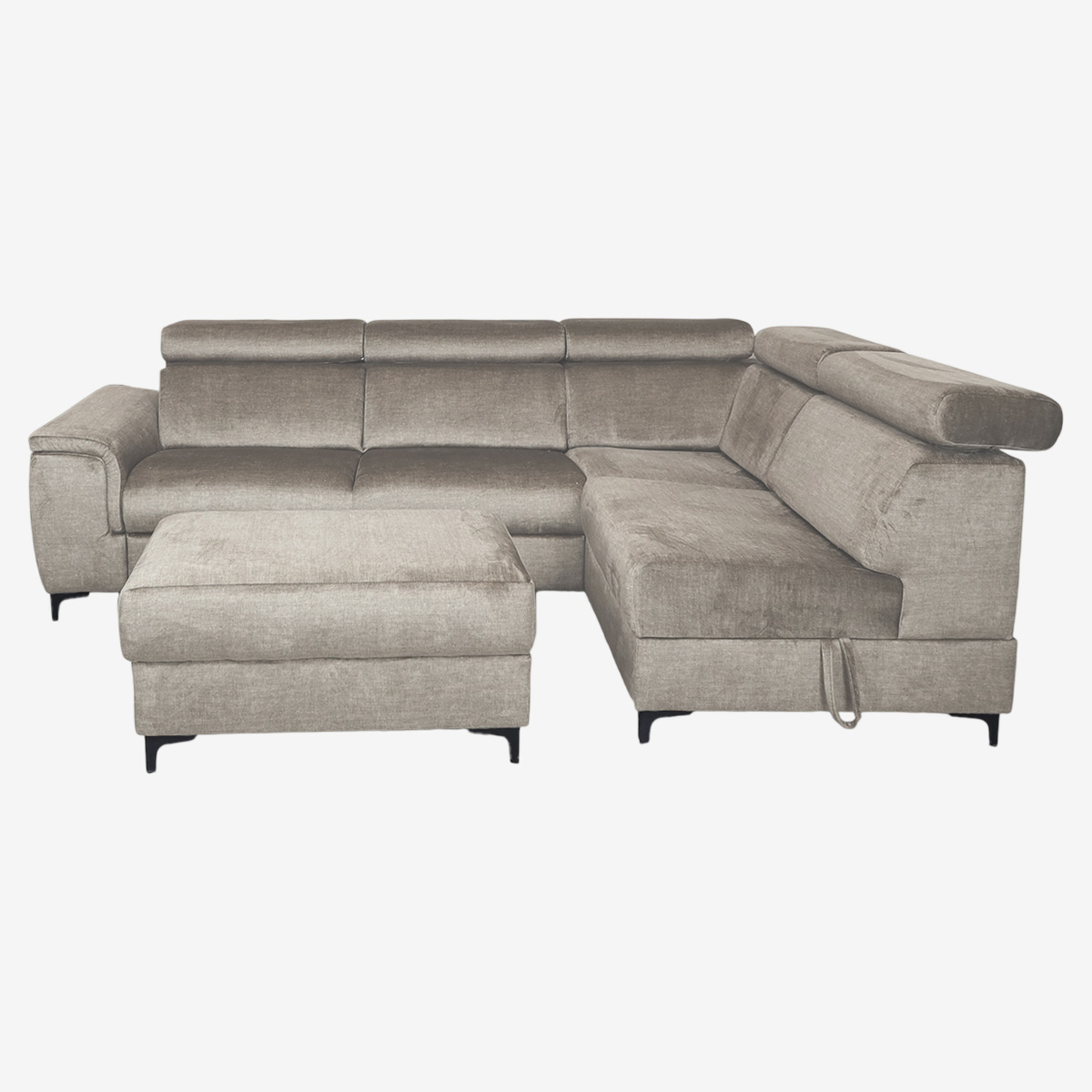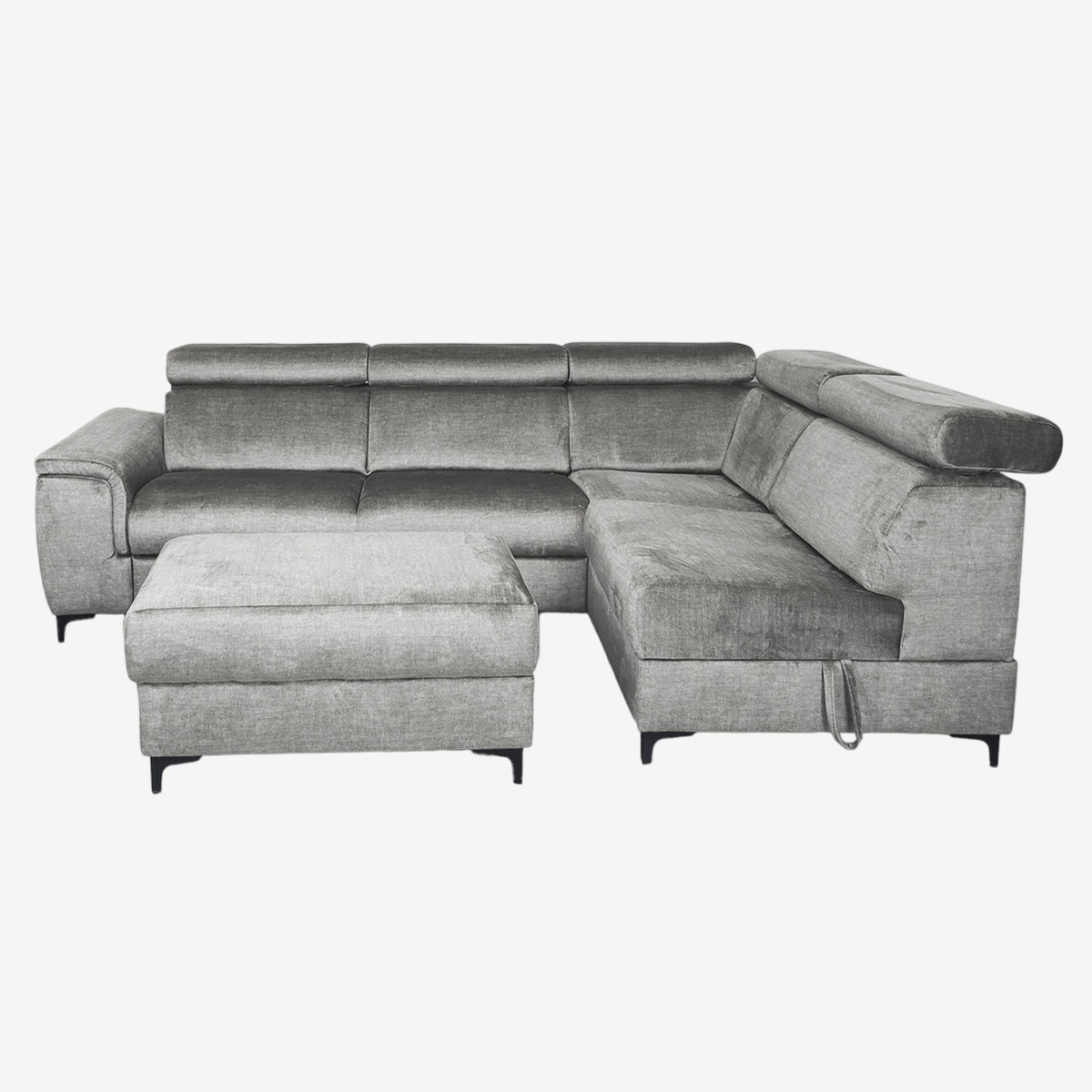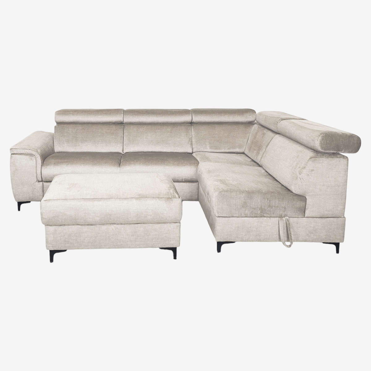 - Canapé d’angle convertible droit avec pouf indépendant