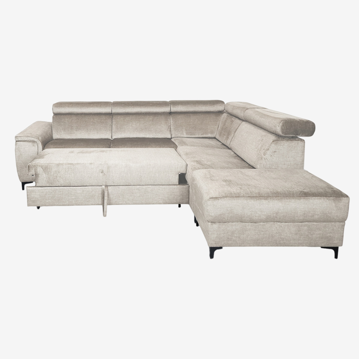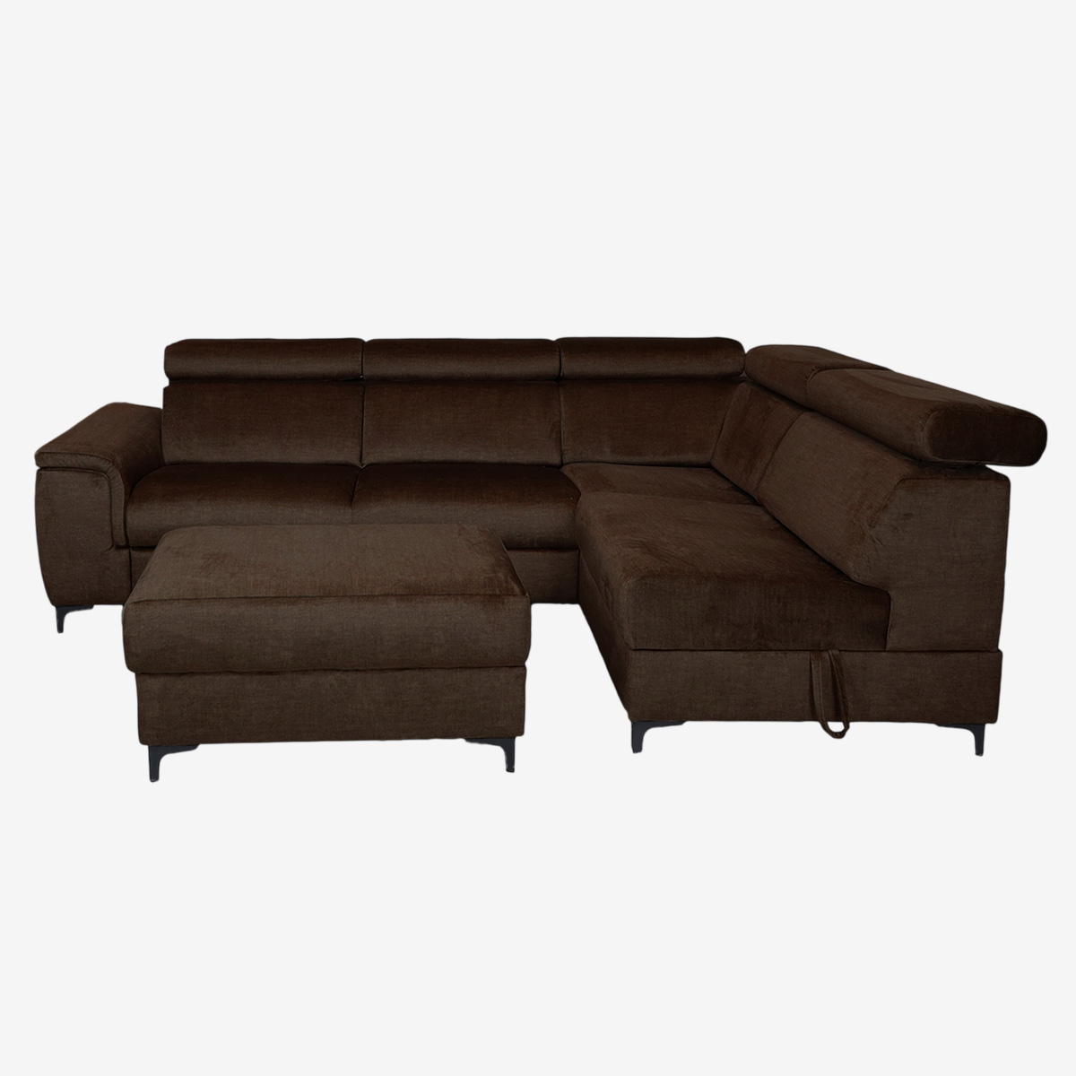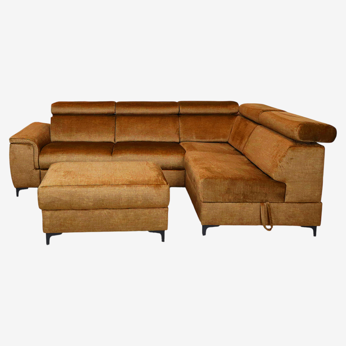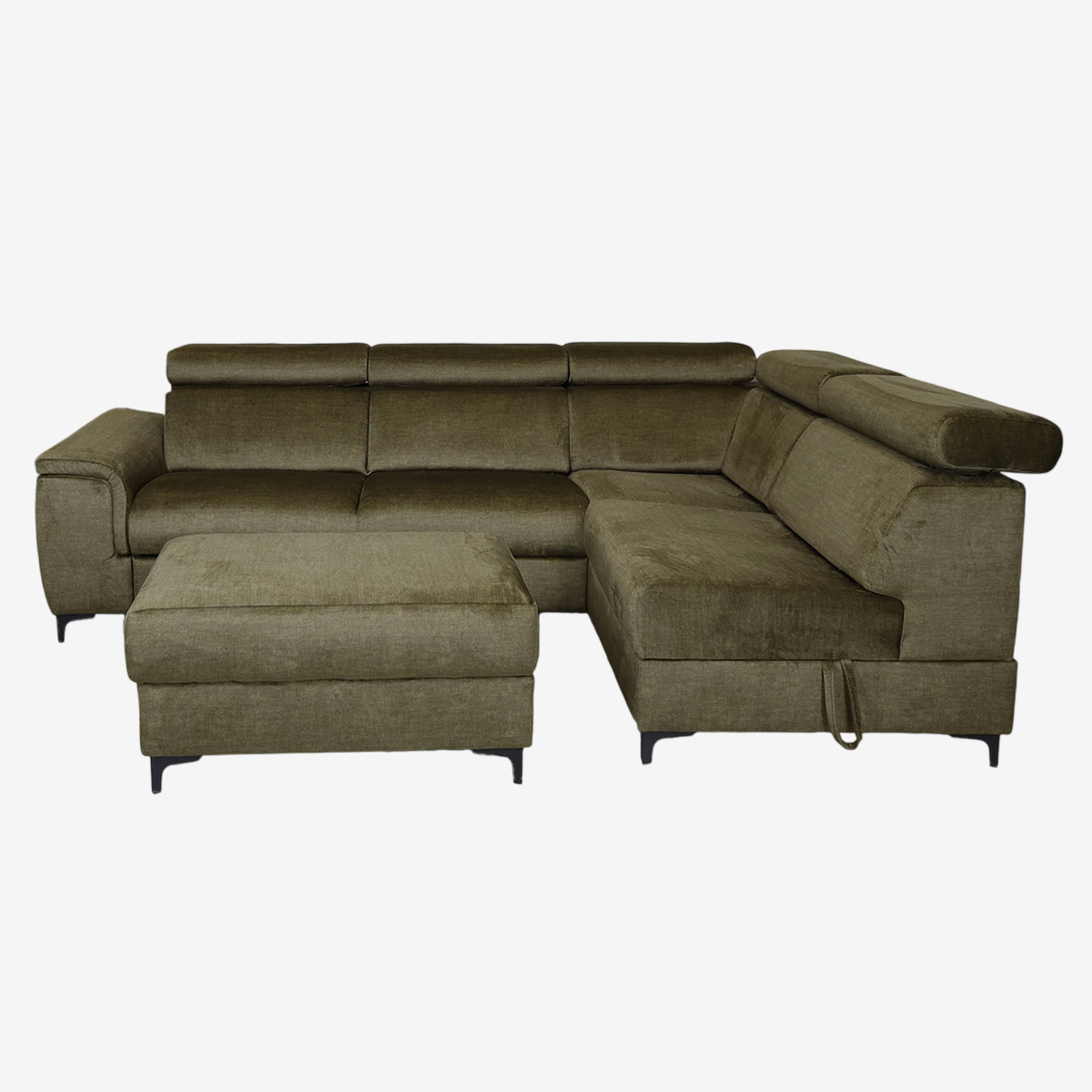 - Canapé d’angle convertible droit avec pouf indépendant