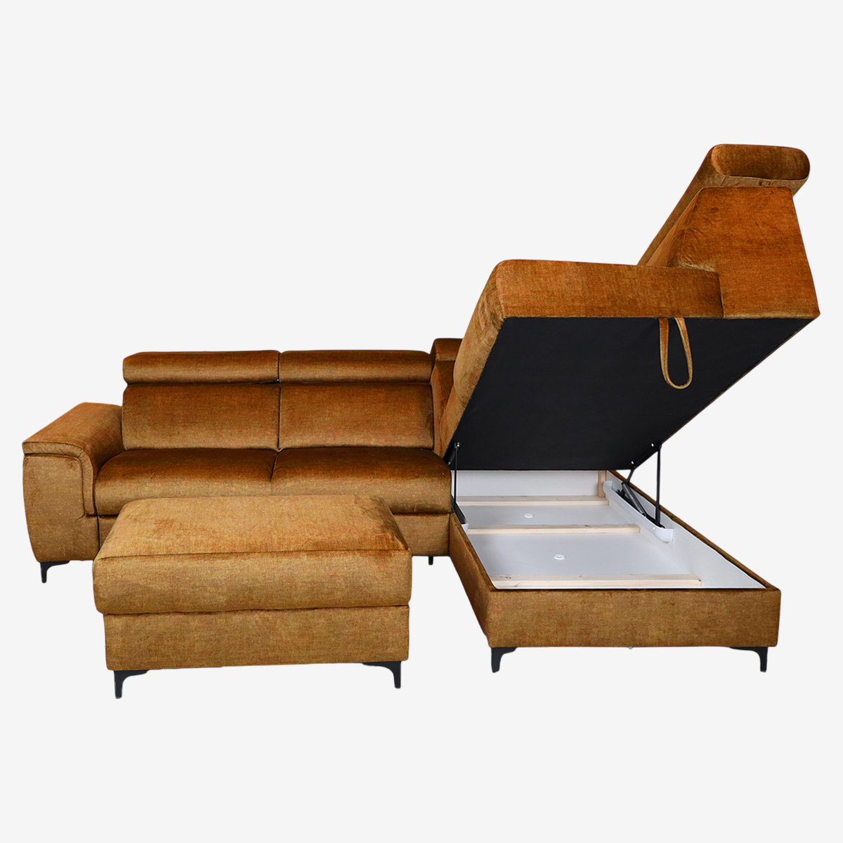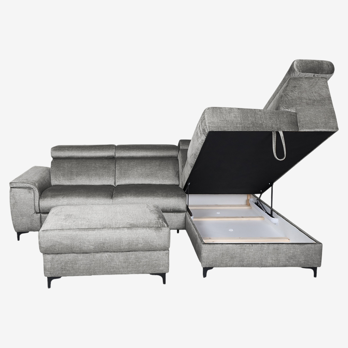 Le canapé d’angle convertible droit MAJESTIC séduit par ses dimensions généreuses de 272 x 84 x 231 cm et par sa conception pensée pour un usage quotidien. Son pouf indépendant de 93 x 47 x 56 cm vient compléter l’ensemble pour offrir davantage de modularité et de confort dans la pièce de vie.