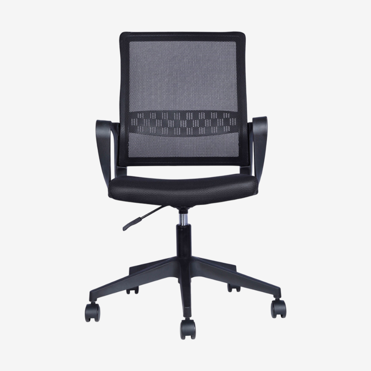 CHAISE DE BUREAU REGLABLE EN HAUTEUR (90.5 à 102cm) - VERIN A GAZ - COLONNE CENTRALE ET LES FIXATIONS EN MÉTAL - BASE ET ACCOUDOIRS EN PLASTIQUE - ASSISE ET LE DOSSIER RECOUVERTS D’UN TISSU EN MAILLE RESPIRANTE