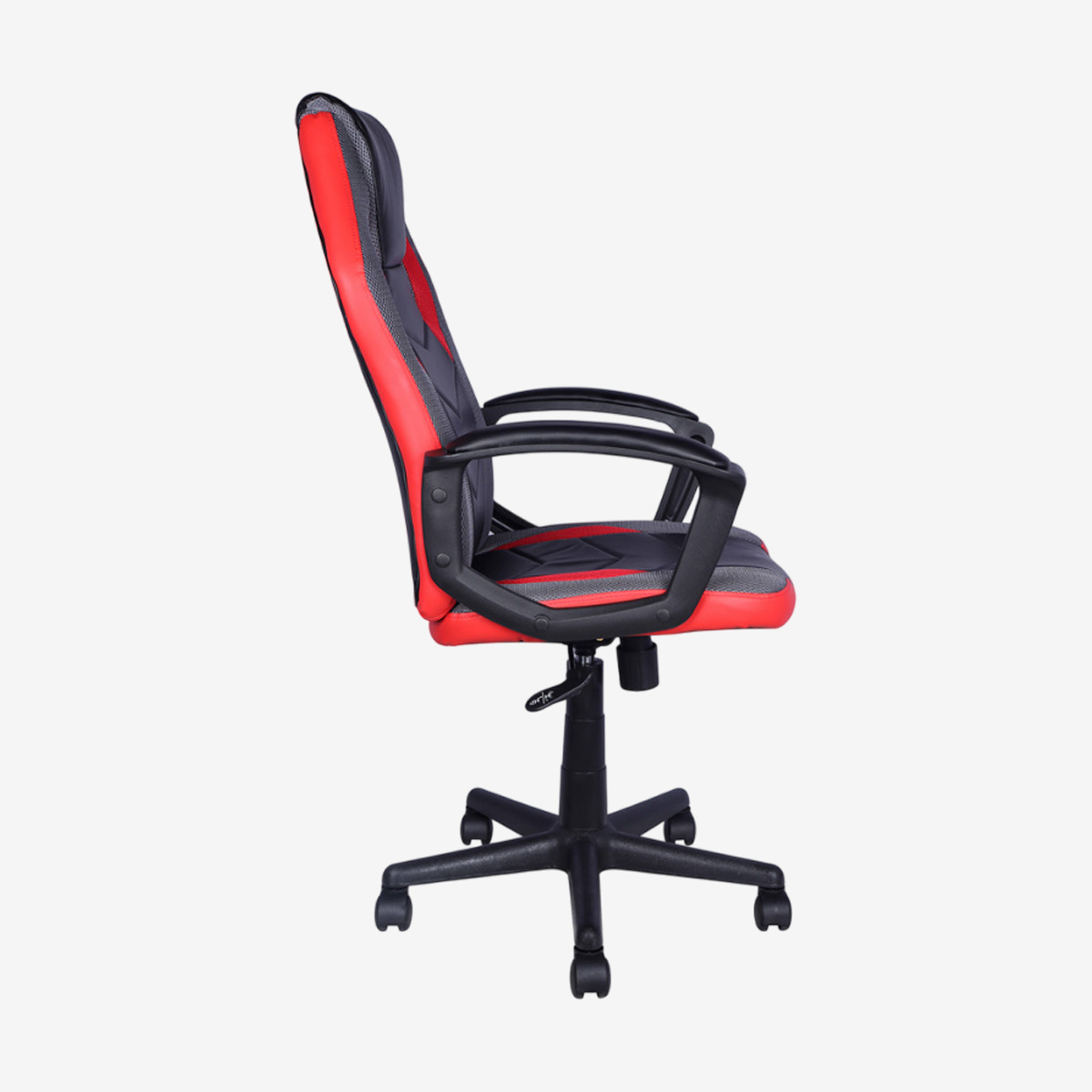 FAUTEUIL GAMING REGLABLE EN HAUTEUR (10205 à 112cm) - VERIN A GAZ - COLONNE CENTRALE ET LES FIXATIONS EN MÉTAL - BASE ET ACCOUDOIRS EN PLASTIQUE - ASSISE ET DOSSIER RECOUVERTS D’UN TISSUS PU CUIR