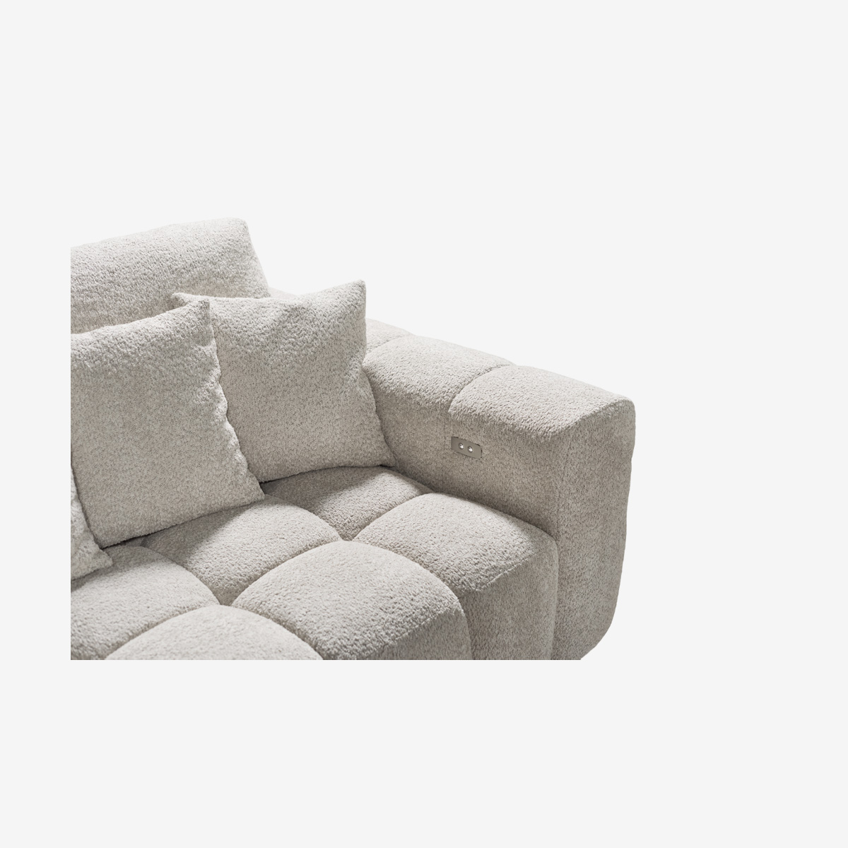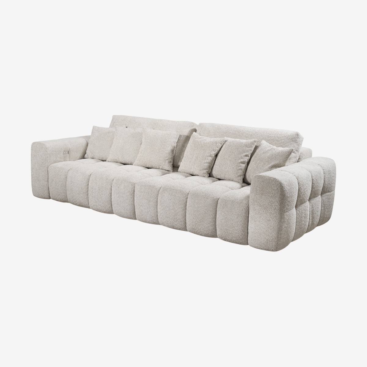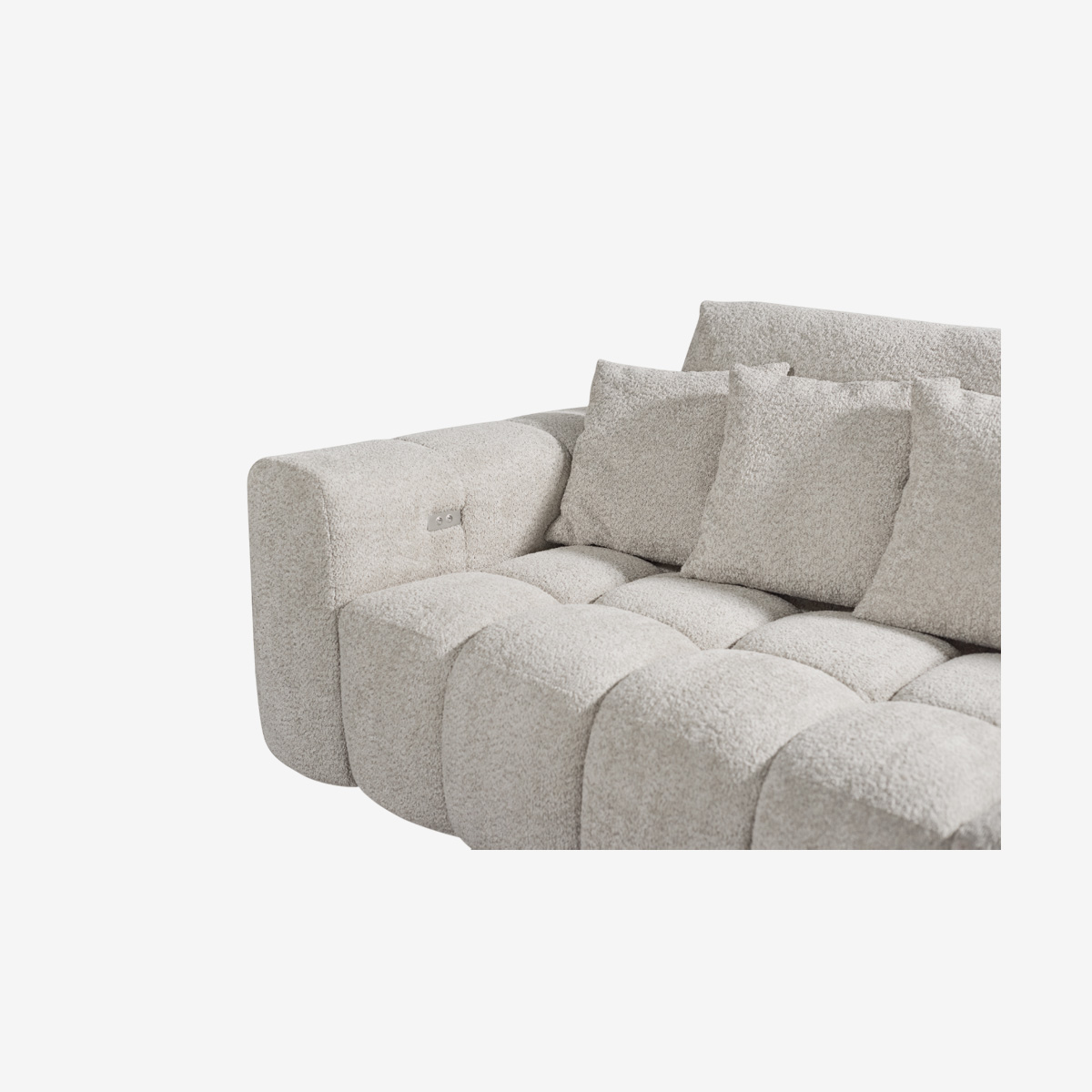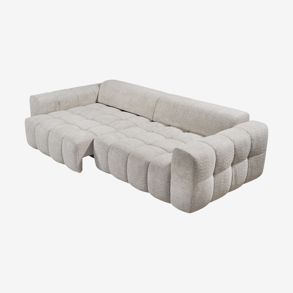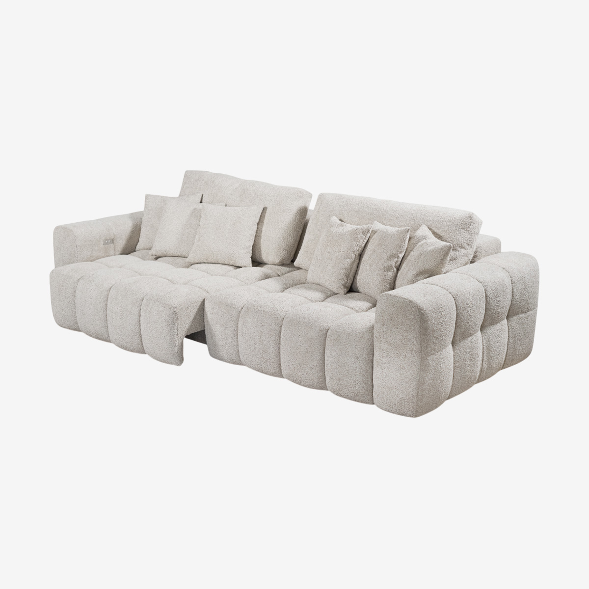 Pensé pour offrir une expérience de détente optimale, le canapé CYRELIA est équipé d’un système électrique avance-recule permettant d’ajuster facilement la profondeur d’assise. Cette fonctionnalité offre un confort personnalisé, aussi bien pour les moments de détente que pour recevoir.