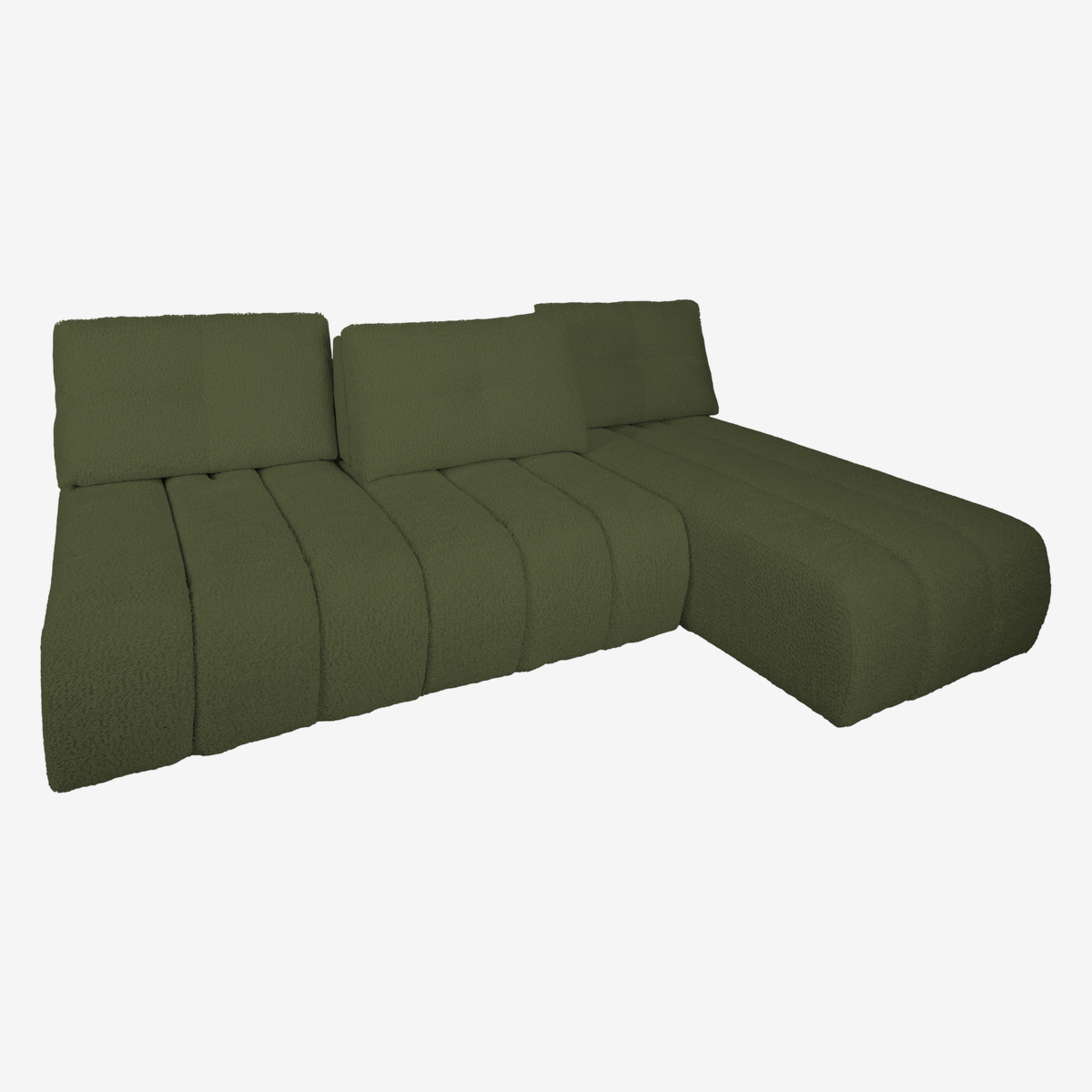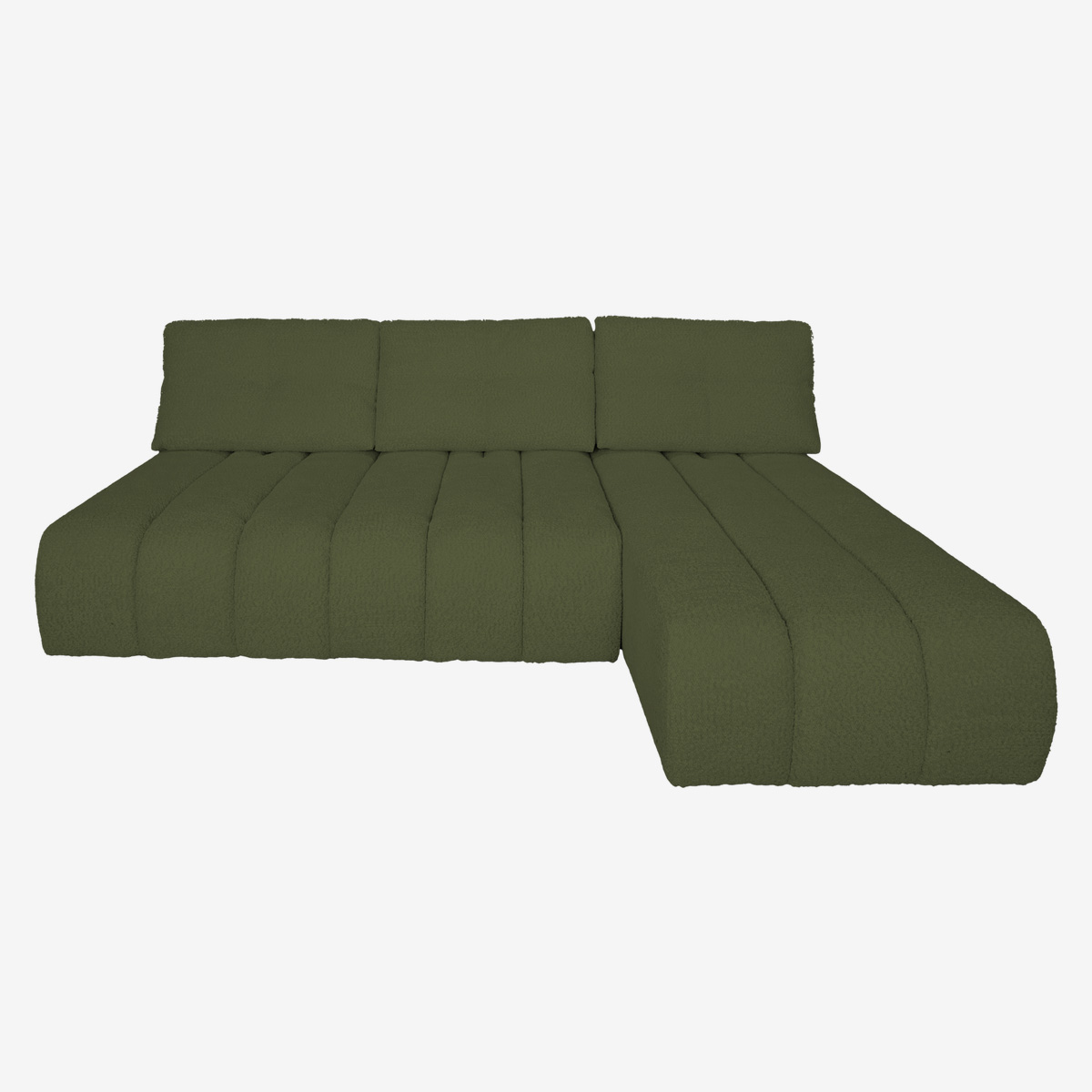 ANGLE FIXE REVERSIBLE - DOSSIERS D’ASSISE AVEC SYSTÈME AVANCE / RECULE DE 20 CM - STRUCTURE EN PANNEAUX DE PARTICULES E1-16 MM, PANNEAU DE FIBRES DURES, BOIS MASSIF (HÊTRE, BOULEAU, PIN) FSC, CARTON COMPACT, TOILE PP. ASSEMBLAGE PAR COLLAGE ET AGRAFAGE, GARNISSAGE PAR MOUSSE POLYÉTHER 21 KG/M3. SUSPENSION : ASSISE : SANGLES + RESSORTS ZIG ZAG - DOS : TISSU POLYESTER - COUSSINS D’ASSISE EN MOUSSE HAUTE RÉSILIENCE 10 CM 30 KG/M3 + 2 CM 25 KG/M3 + 2 × OUATE POLYESTER 200 G/M² - DOS : 1 CAPITON – AMOVIBLE - REMPLI DE FLOCONS DE FIBRE CREUSE - ASSOCIÉ AU SYSTÈME AVANCE / RECULE - PIEDS EN POLYPROPYLÈNE - COUSSINS DE DÉCORATION DÉHOUSSABLES - PIEDS EN POLYPROPYLÈNE