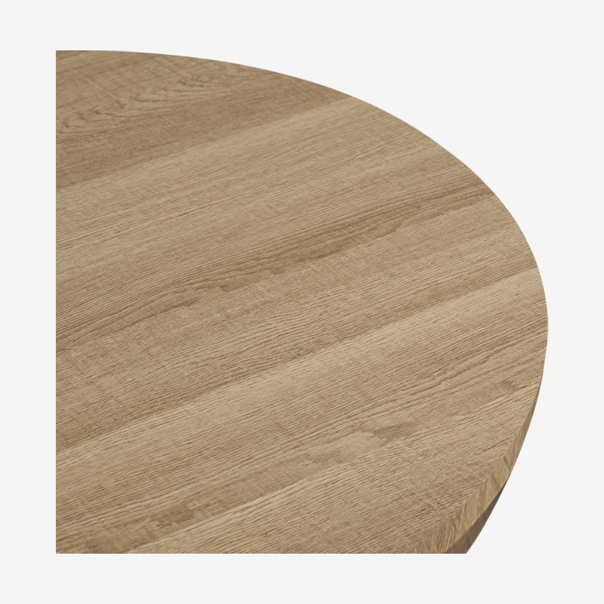 Sa structure en MDF assure stabilité et durabilité, tandis que son plateau épais de 25 mm, recouvert d’un papier décor 3D, apporte un rendu chêne naturel élégant et facile d’entretien.