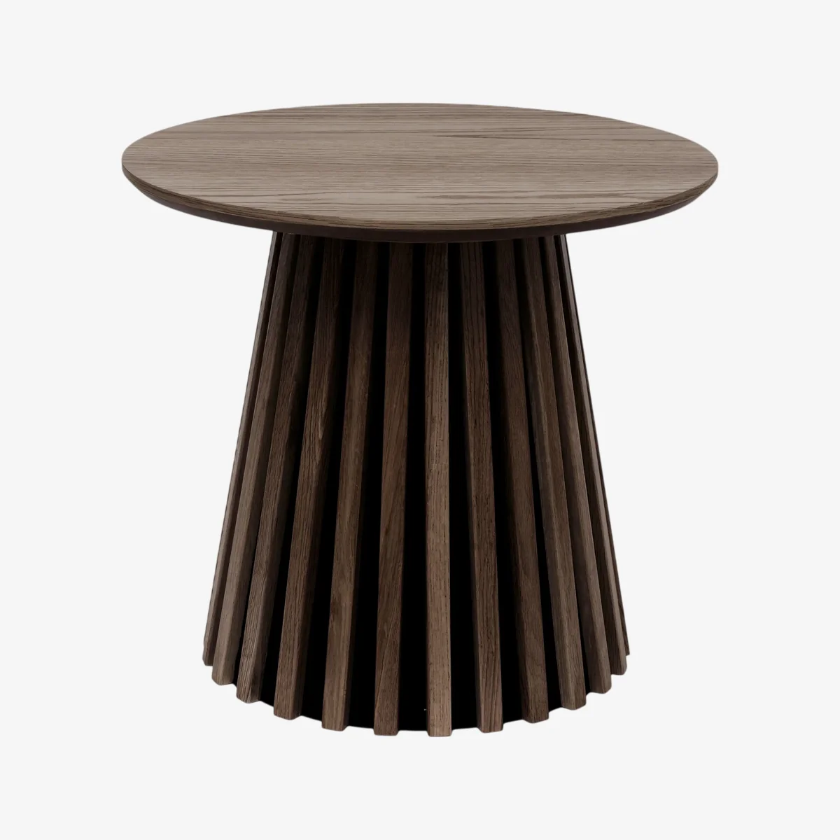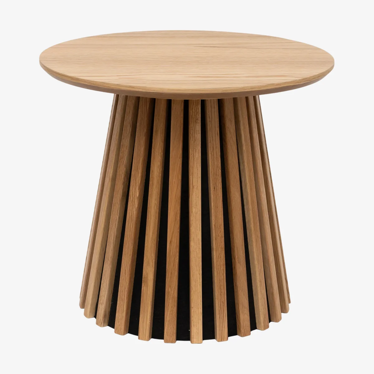 Conçue en bois, MDF et placage chêne, elle combine stabilité, solidité et esthétique. Sa hauteur de 45 cm est idéale pour accompagner un canapé, un fauteuil ou pour servir de support décoratif.