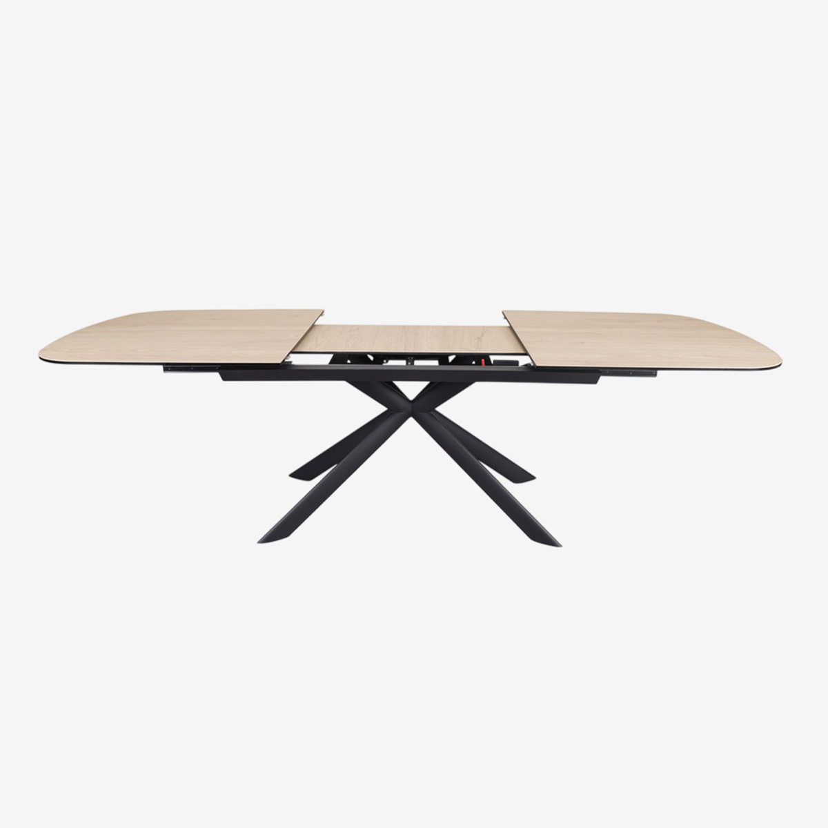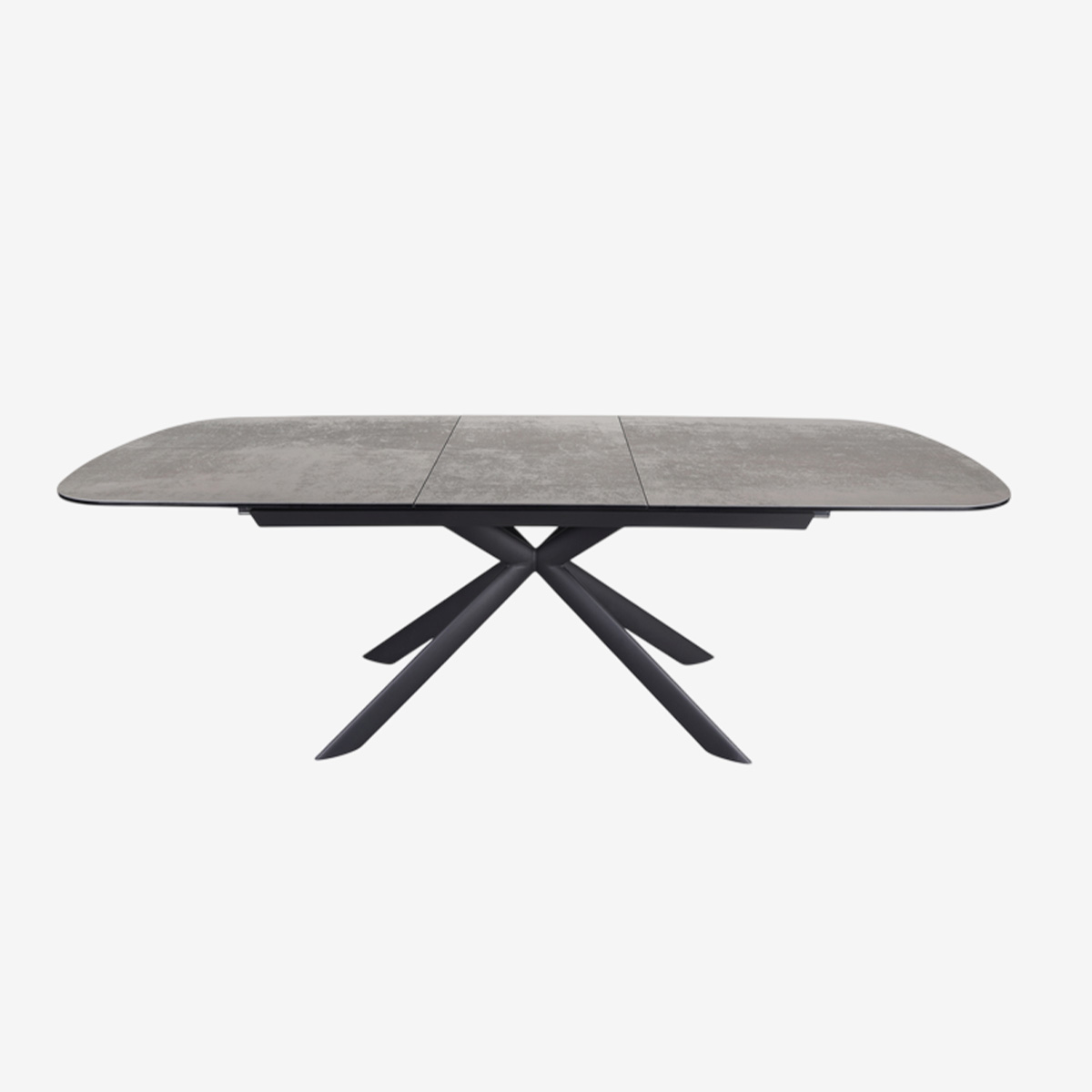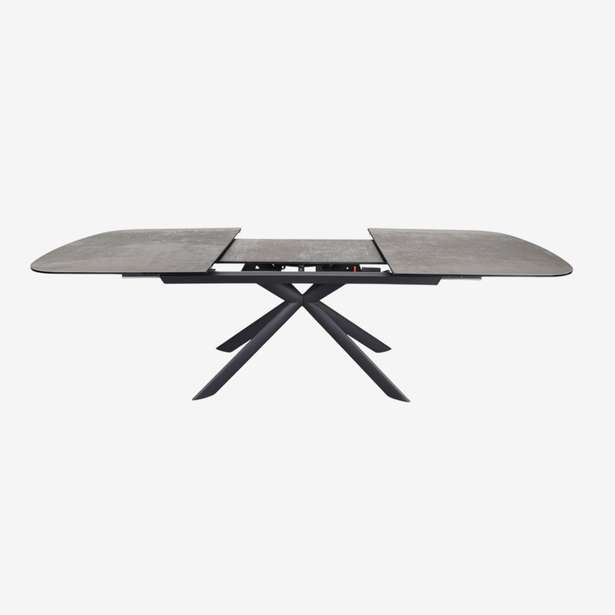 TABLE L180 AVEC ALLONGE CENTRALE 50cm, PLATEAU CERAMIQUE 3mm SUR VERRE TREMPE 10mm, CADRE ET PIEDS EN ACIER POUDRE NOIR MAT - DIMENSIONS OUVERTE : 230x76x100