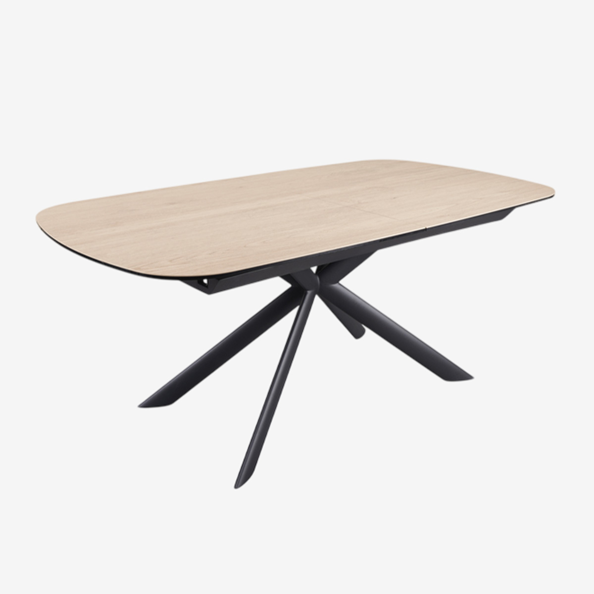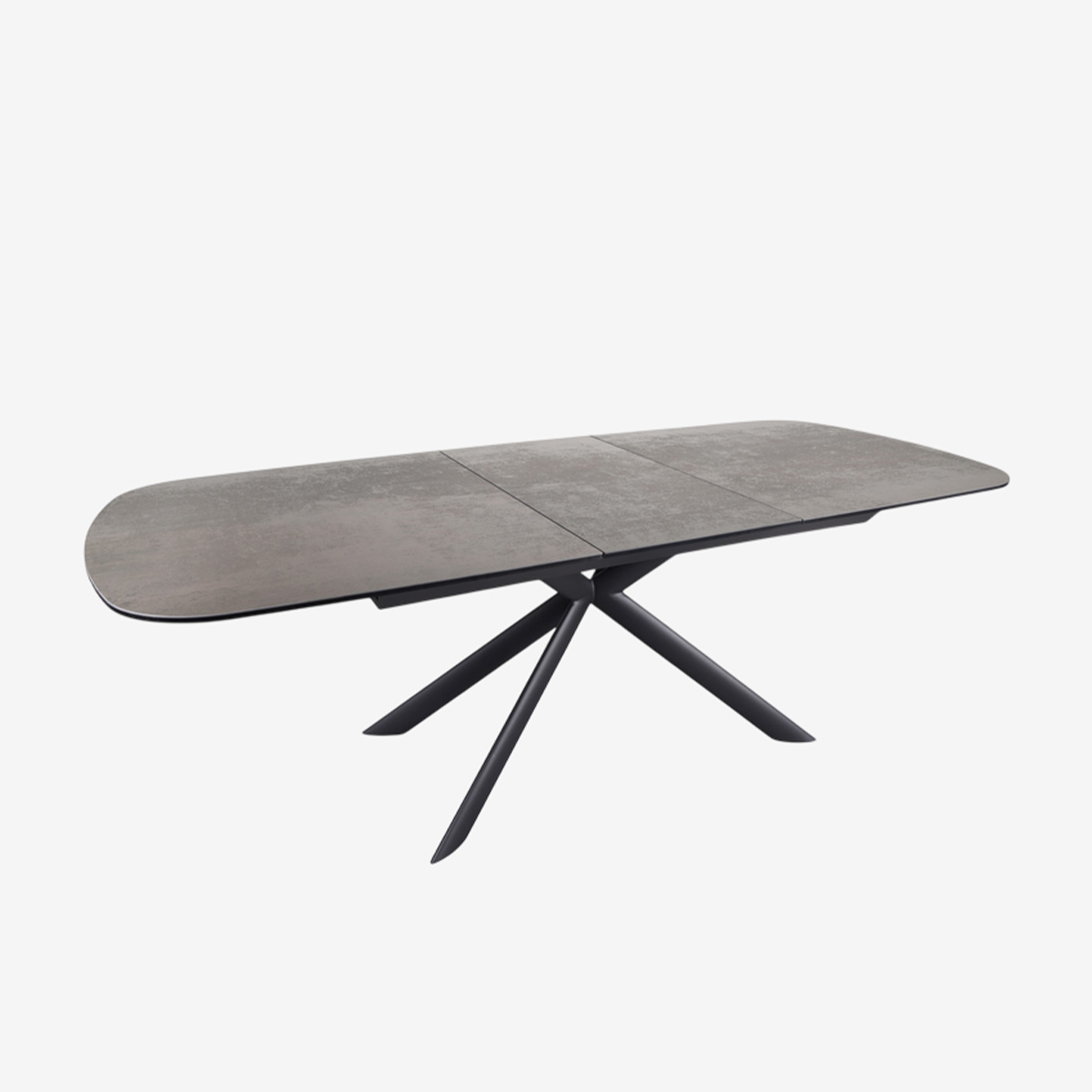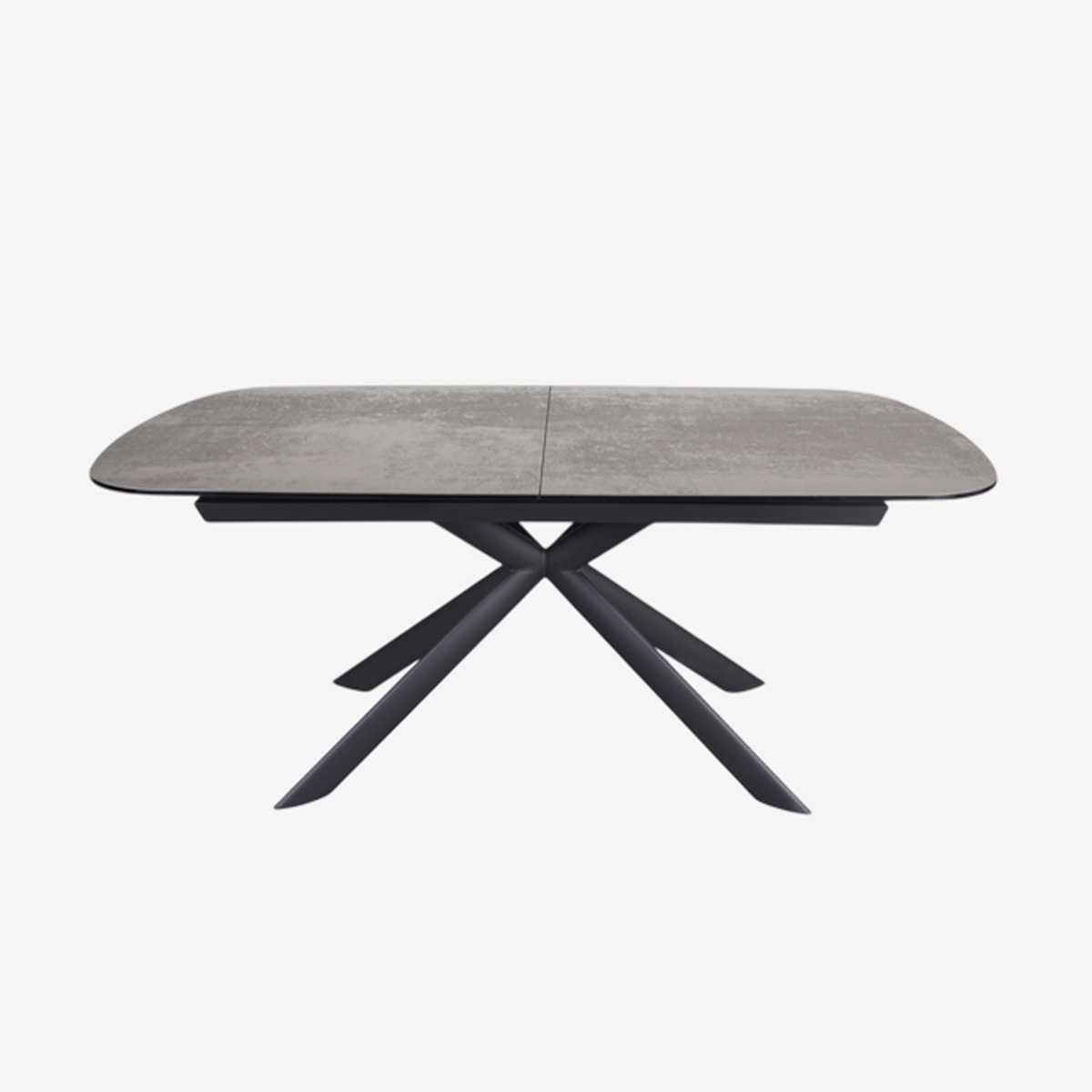 TABLE L180 AVEC ALLONGE CENTRALE 50cm, PLATEAU CERAMIQUE 3mm SUR VERRE TREMPE 10mm, CADRE ET PIEDS EN ACIER POUDRE NOIR MAT - DIMENSIONS OUVERTE : 230x76x100